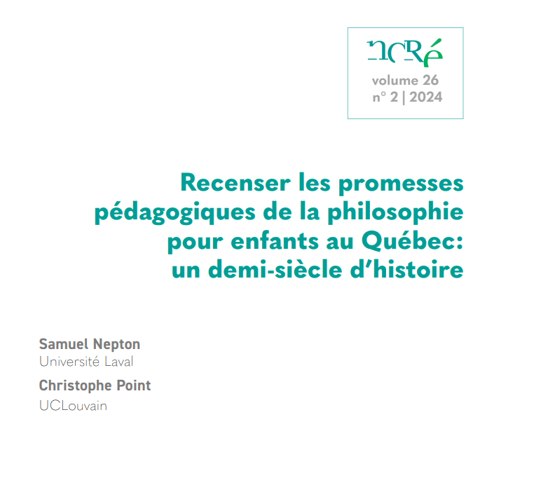 Dans la revue des Nouveaux cahiers de la recherche en éducation, Christophe Point et moi-même venons de publier un article intitulé : « Recenser les promesses pédagogiques de la philosophie pour enfants au Québec : un demi-siècle d’histoire ».